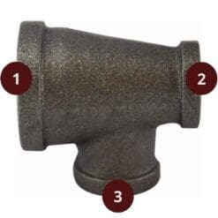 1-1/4″ X 1″ X 1″ Pipe Fitting Reducing Tee, 1-1/4″ Female NPT x 1″ Female NPT x 1″ Female NPT, 150# Black Malleable Iron