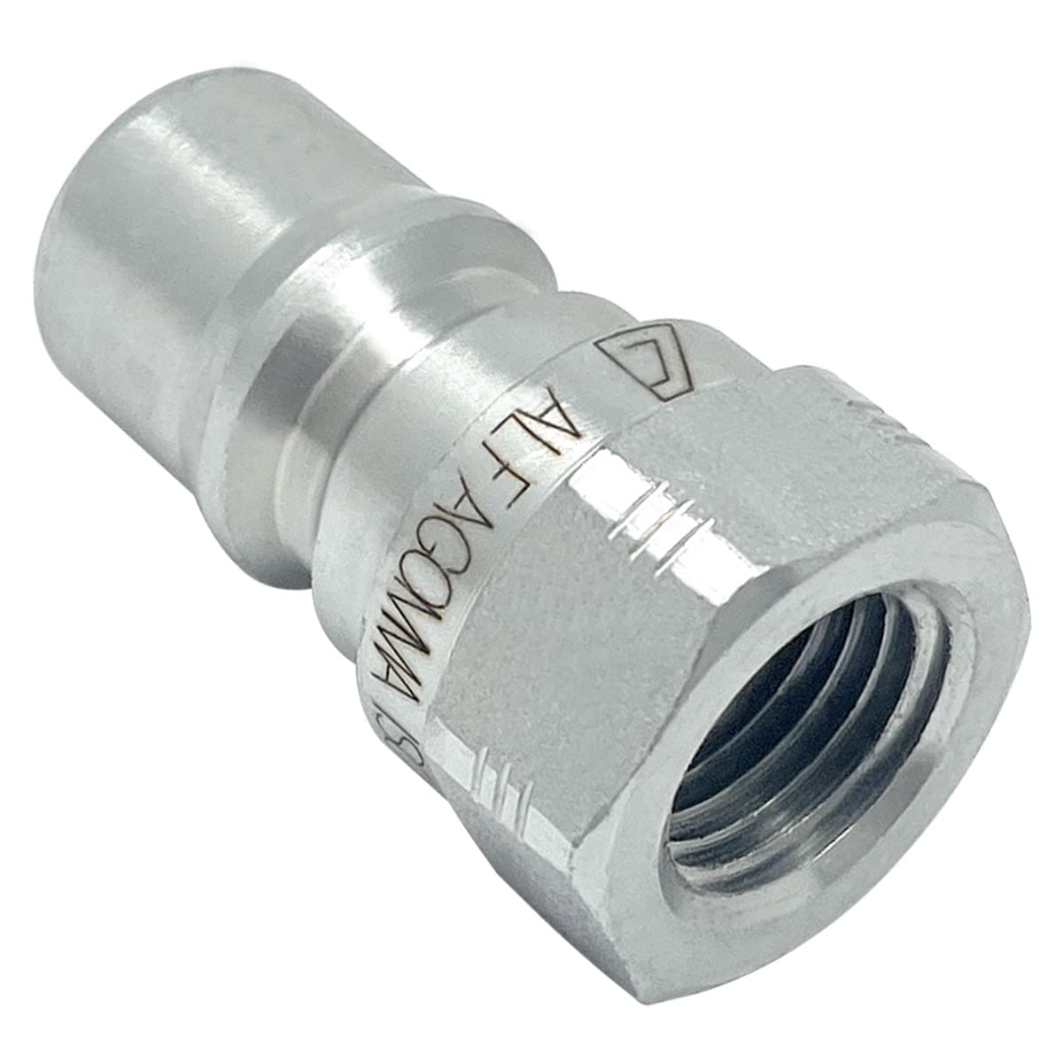 QD ISO B 1/4″ Male x 1/4″ FPT ARGUS ISO 7241-1 series “B” quick-release couplings are used for quick coupling and uncoupling of hydraulic lines. During the coupling action in zero or low-pressure ranges, valves that release or block the flow are automatically activated. The QA-ISO-B quick-release coupling, formed by the coupling plug and the coupling socket, is connected by pushing on a sleeve. This guarantees a flush connection between the two coupling halves.