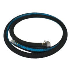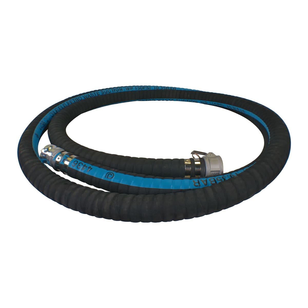 The hose is made of flexible black NBR/SBR with corrugated – blue lay line and is reinforced by a high tensile cord with a dual steel wire helix. It has a working temperature range of -22° F to +185° F.