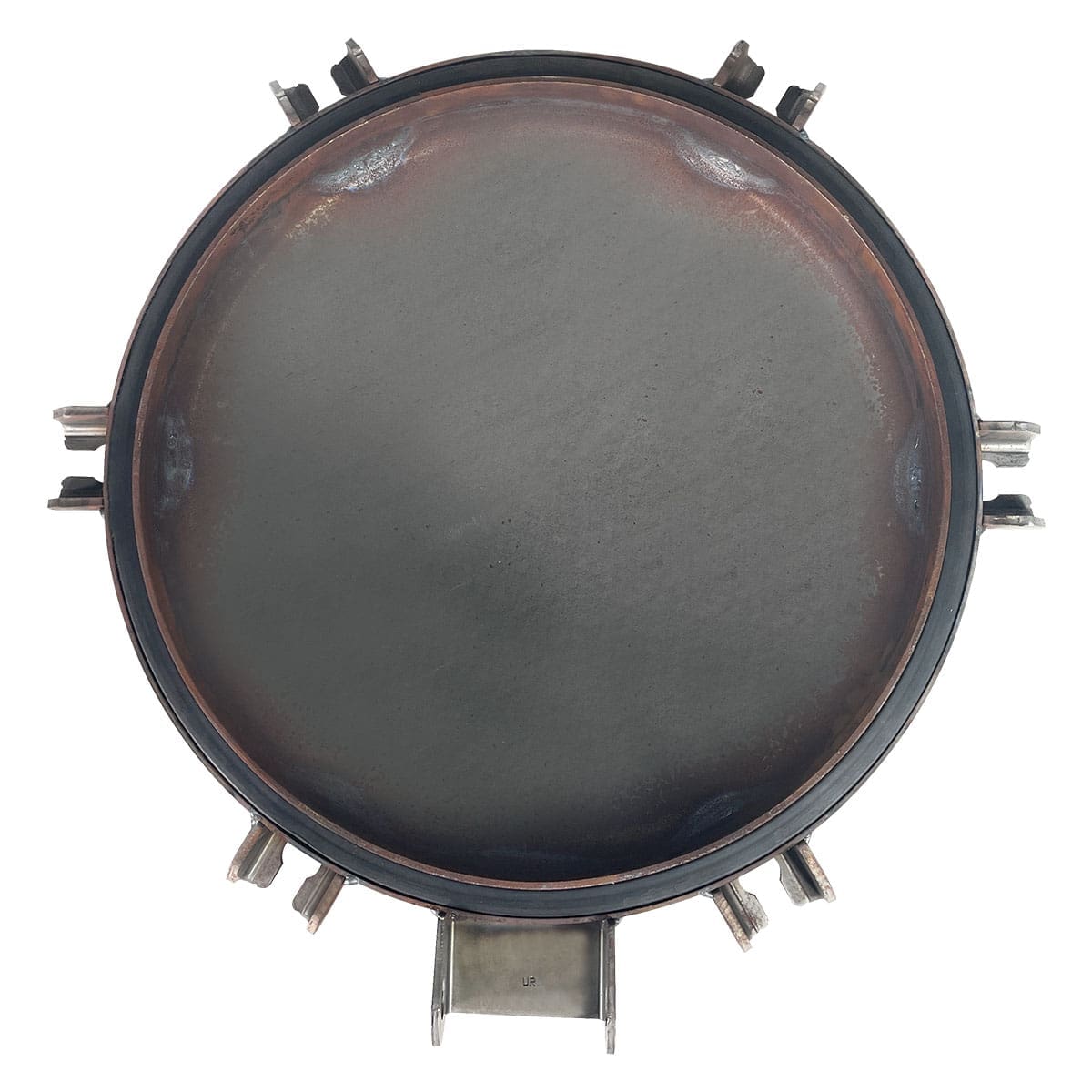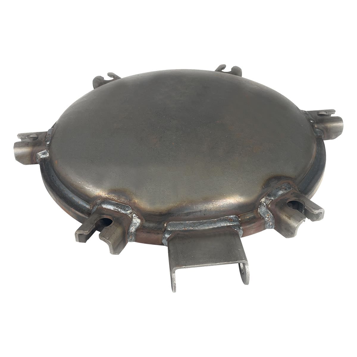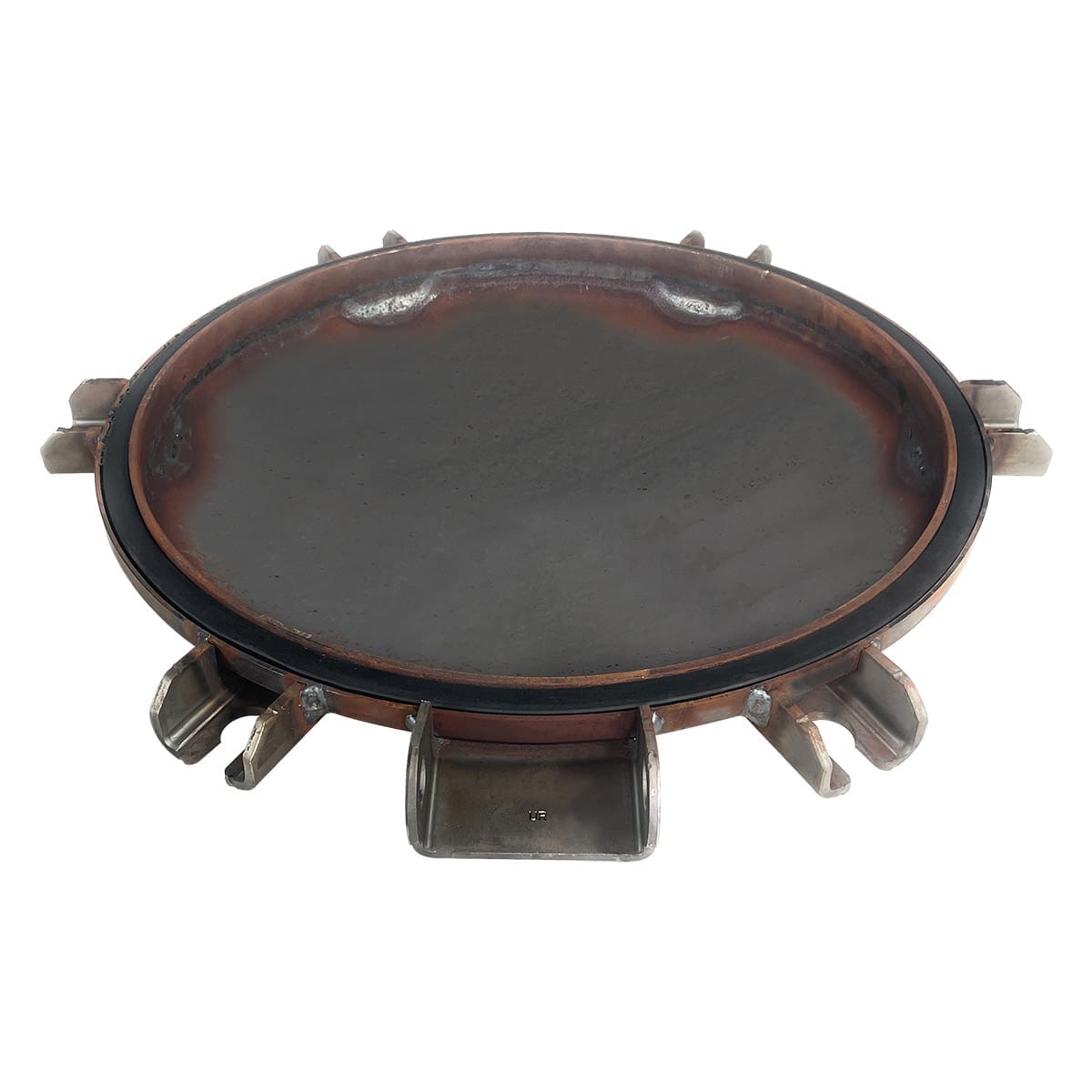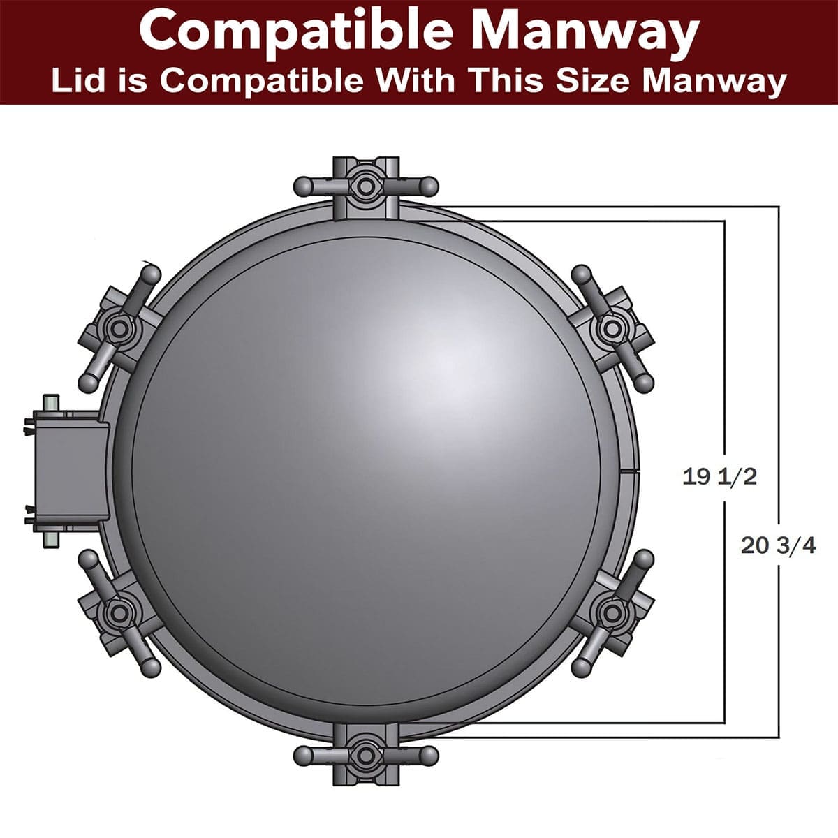 This lid is compatible with 6 bolt manways with a 19.5″ OD neck. The lid comes unpainted.