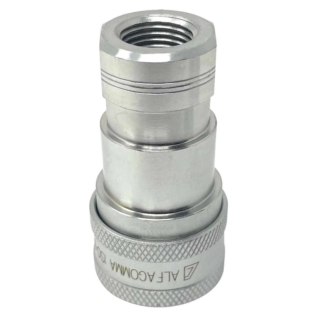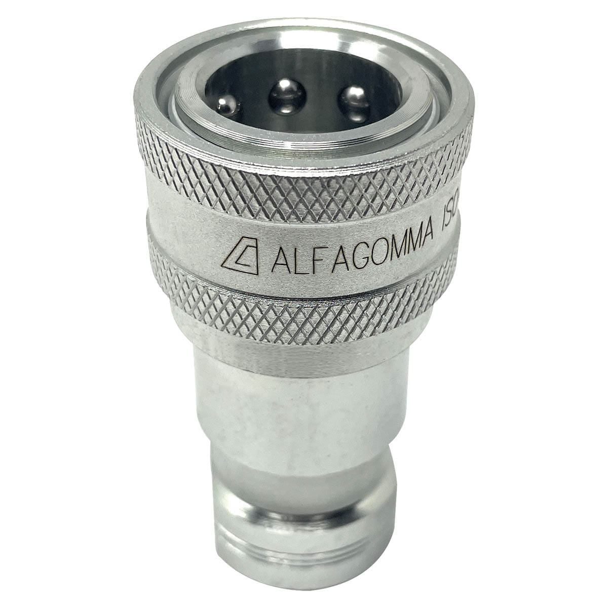 QD ISO B 3/8″ Male x 3/8″ FPT ARGUS ISO 7241-1 series “B” quick-release couplings are used for quick coupling and uncoupling of hydraulic lines. During the coupling action in zero or low-pressure ranges, valves that release or block the flow are automatically activated. The QA-ISO-B quick-release coupling, formed by the coupling plug and the coupling socket, is connected by pushing on a sleeve. This guarantees a flush connection between the two coupling halves.