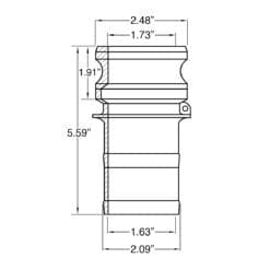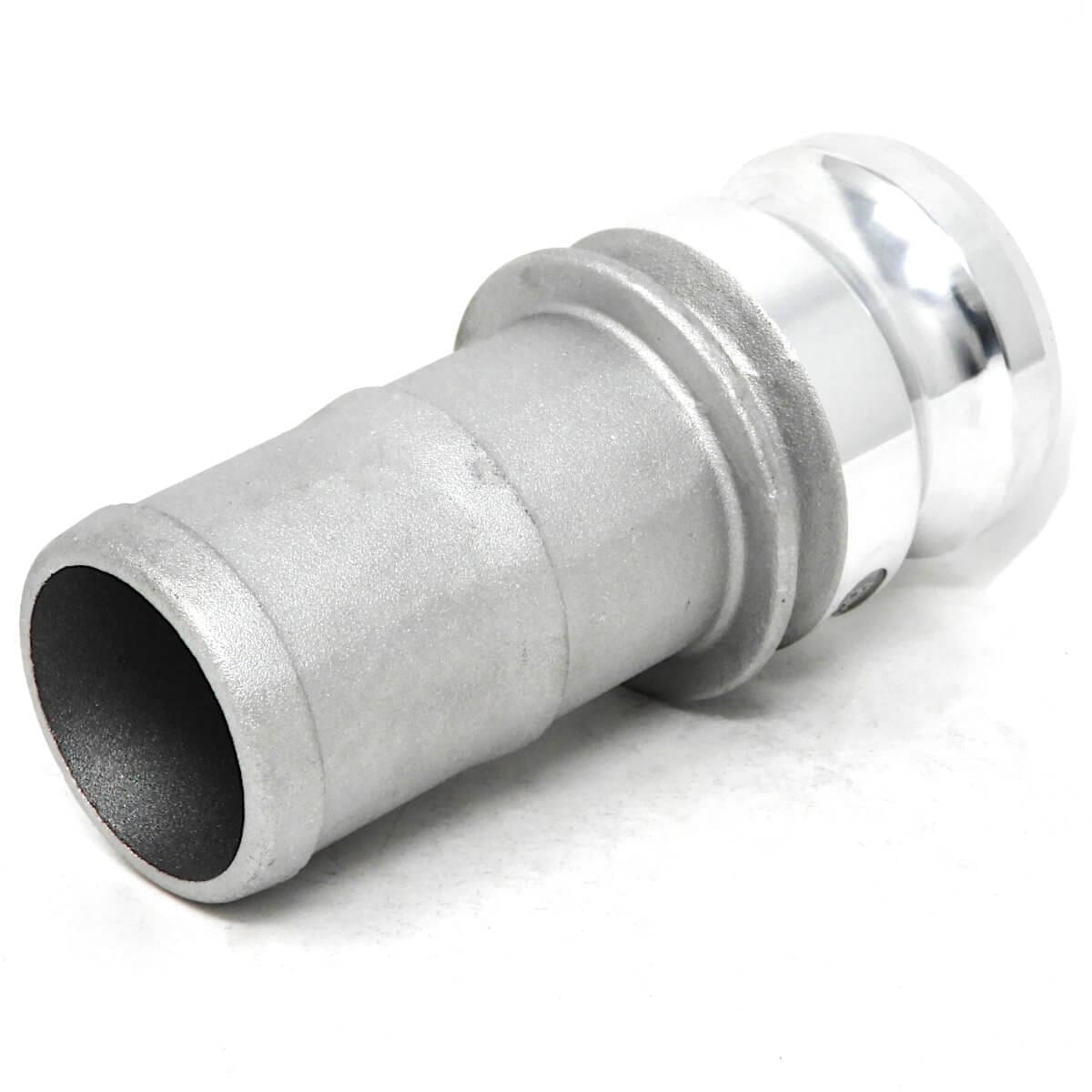 Gloxco brand aluminum 2″ Type E camlock fitting. This type E camlock (Cam and Groove) fitting has a 2″ male quick connect coupling on one side and a hose shank on the other side. This male side of this coupler will attach to a 2″ female camlock. The hose shank side can be attached to 2″ hose. The body of this cam and groove fitting is made of aluminum. Aluminum cam lock fittings are lightweight and are corrosion and abrasion resistant. These cam and groove fittings are suitable for use with water, hydraulic oils, coolants, gasoline, and other petroleum products.