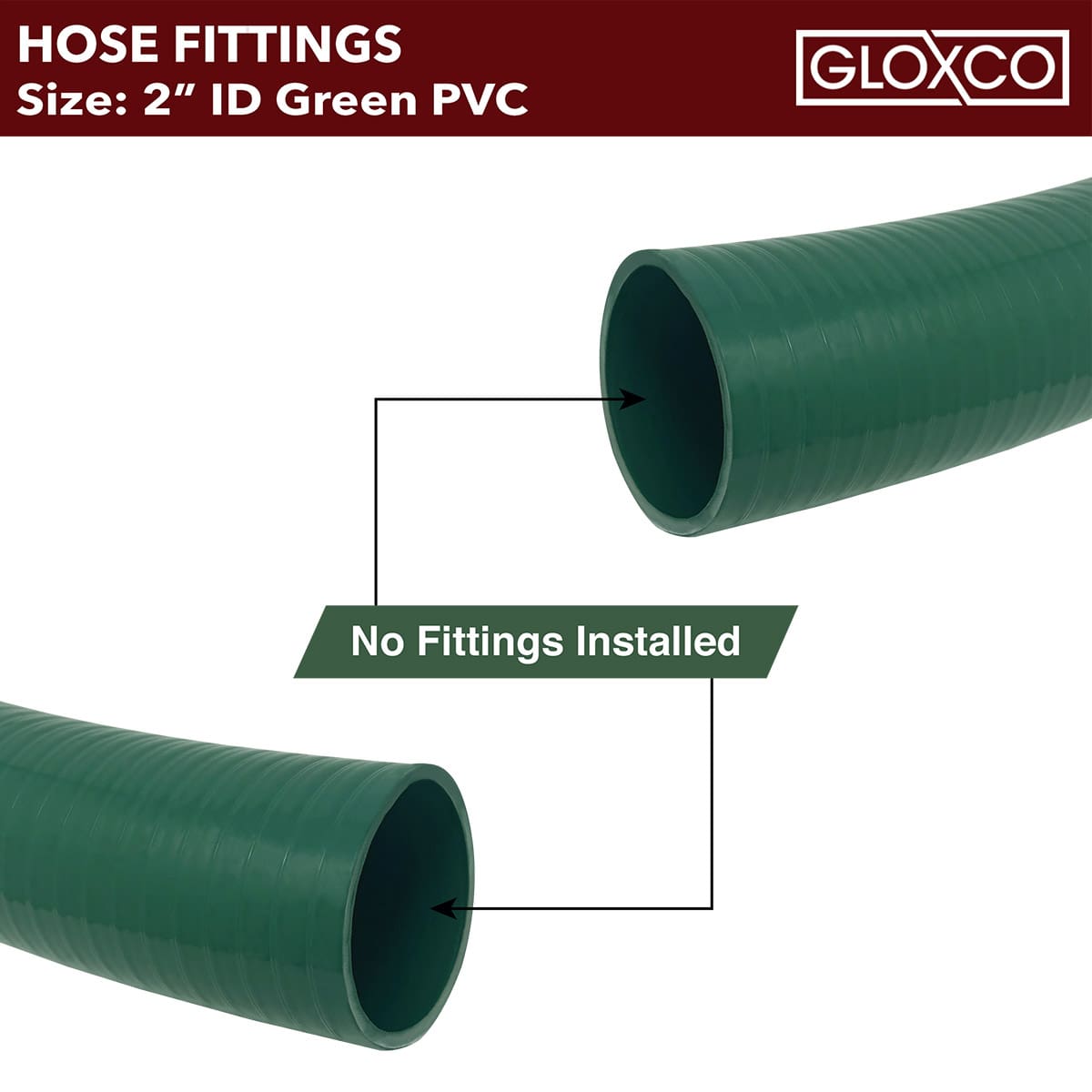Gloxco 2″ ID Green PVC Suction Hose, 65 PSI, 100′ Length