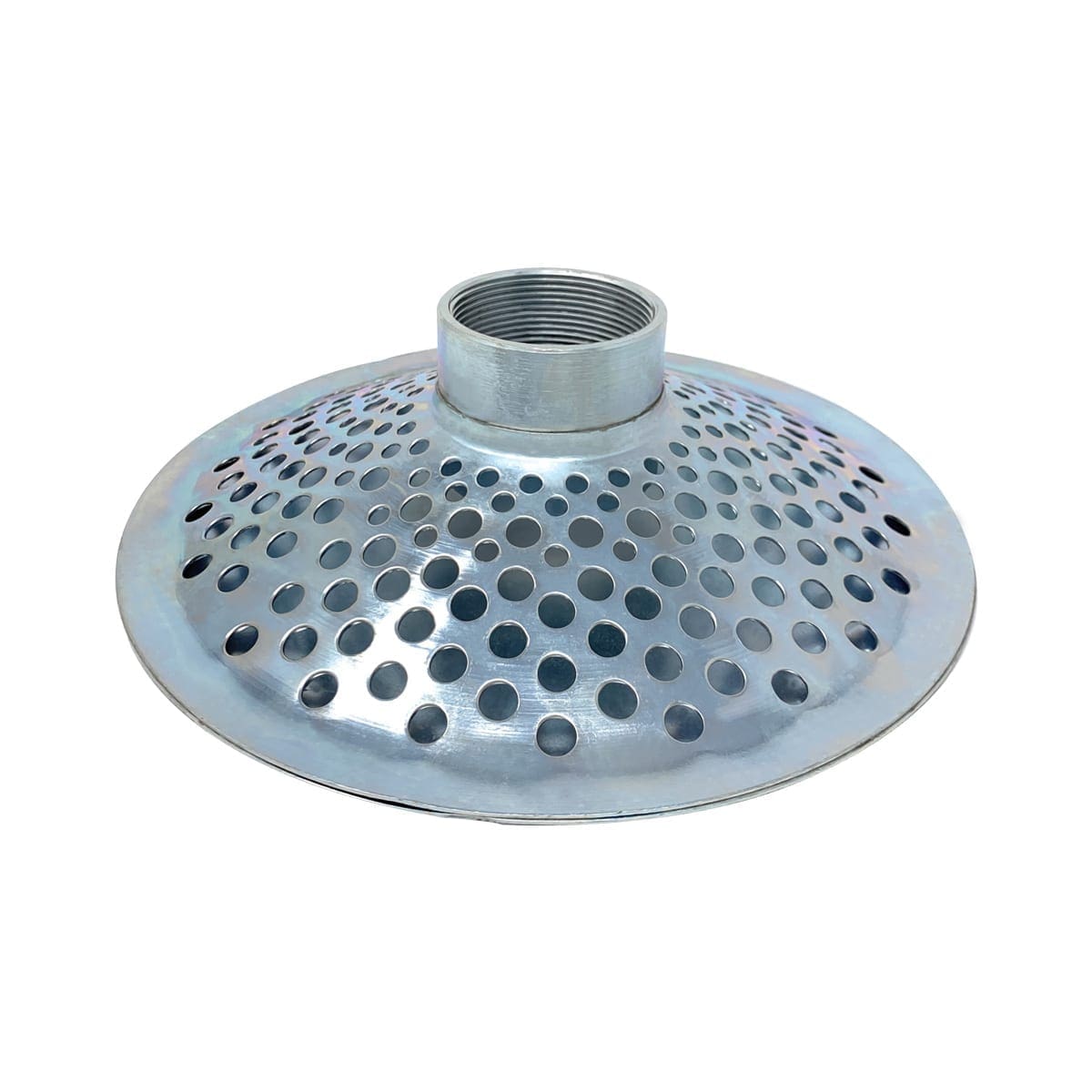 The top hole skimmer suction strainer is used on the suction end of a suction hose to help prevent debris from being sucked into your pump. It is a critical component as it can help prevent your suction pump from being damaged or clogged. This suction strainer has round holes on the top. It is made of zinc plated, cold rolled steel for extra durability. It has a female NPT thread and will connect to a the male NPT nipple on your suction hose.